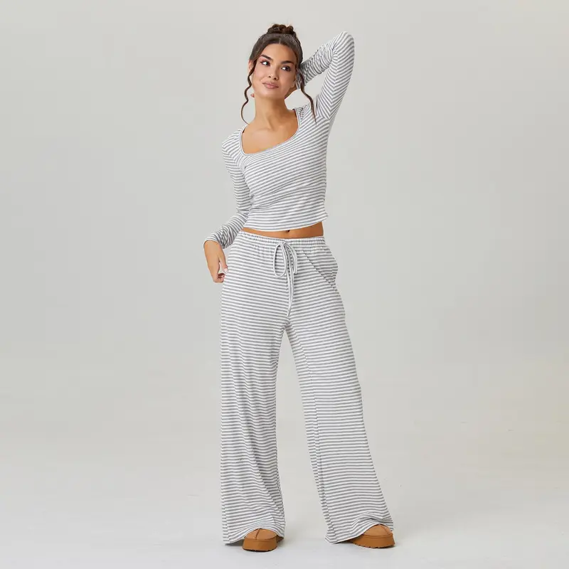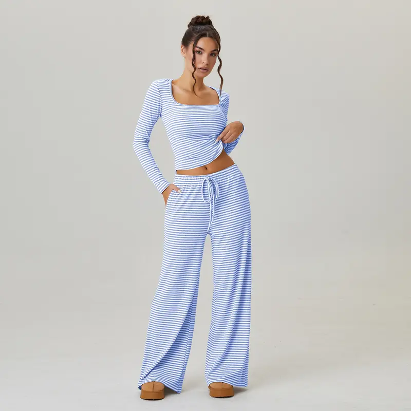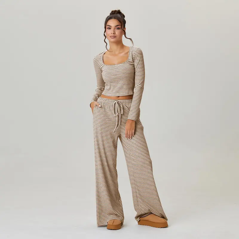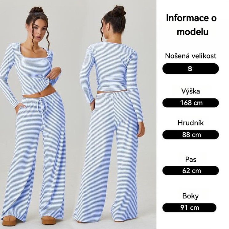 Detaily: Čtvercový výstřih, dlouhé rukávy, krátký top, nízký pas, šňůrka v pase, měkký a elastický materiál